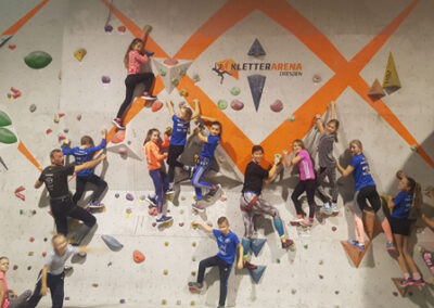 13 Kinder , 2 Trainer und 3 Muttis sind in der letzten Winterferienwoche zum Klettertraining nach Dresden gefahren.